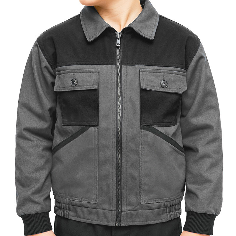 špecifikácia: praktická monterková bunda so zapínaním na zips, vhodná pre chapcov a dievčatá na voľný čas, 2 predné veľké vrecká a 2 náprsenkové vrecká so zapínaním na gombíky, v páse sťahovacia guma, na rukávoch elastický sťahovací úpletbunda so sedlom vpredu aj vzadu a vrecká v inej farebnej kombinácii