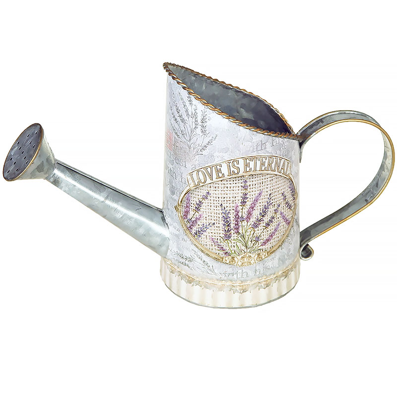 Medzi záhradnými dekoráciami nájdete aj túto provensálsku krhličku Lavender. Táto plechová krhlička obsahuje potlač vo vintage štýle a to vo forme levanduľových kvetov a bledých retro farieb. Jedná sa o ideálnu záhradnú dekoráciu, ktorá poslúži ako kvetináč alebo ako dekoračná krhlička. Tento vintage doplnok ako aj ďalšie vintage dekorácie vytvárajú z obyčajného aranžovania záhradky príjemnú záležitosť, na ktorú sa budete vždy tešiť.