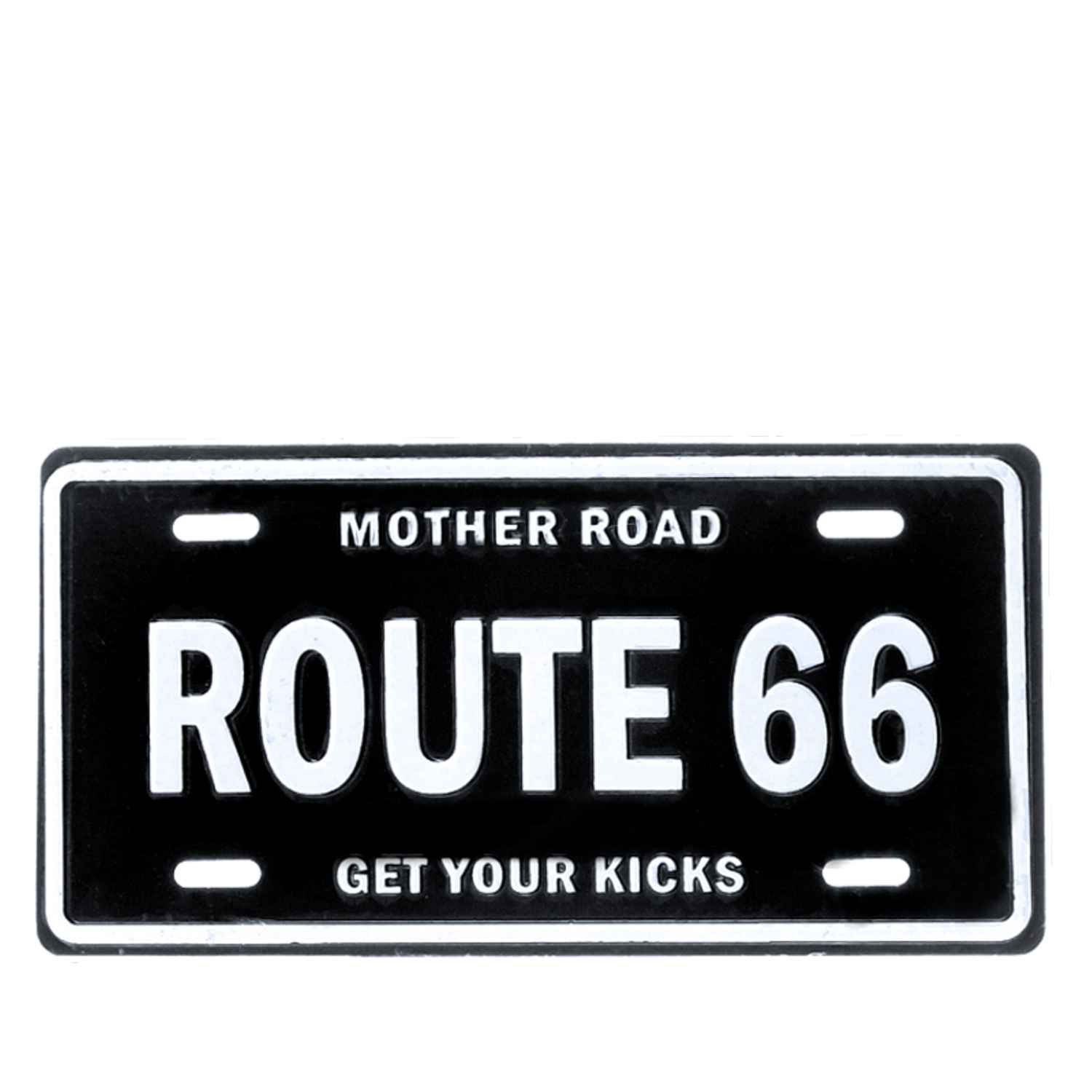 špecifikácia: kovová magnetka s názvom piesne "Get your kicks on route 66", čo v preklade znamená "Poriadne sa odviaž na Route 66", ktorú napísal skladateľ Bobby Troup a ktorá sa stala hitom