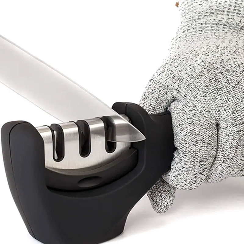 špecifikácia: ručná trojstupňová brúska na nôž naostrí všetky druhy klasických oceľových nožov, ľahké prevedenie