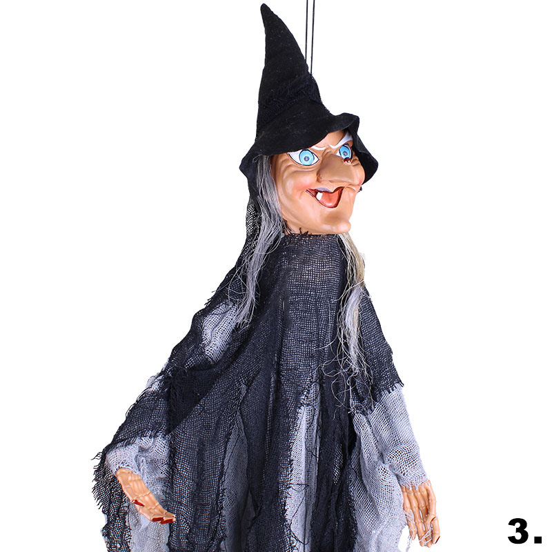 150 cm dlhá striga s klobúkom je oblečená do textilných strigônskych šiat - jedná sa o skvelú halloweensku dekoráciu do bytu alebo ako výzdobu do podniku či na chatu. Pod šatami bosorky je miesto, do ktorého sa vložia dve tužkové batérie 1,5 V AA R6 (nie sú súčasťou balenia). Po vložení bateriek bosorke začnú na 7 sekúnd blikať oči načerveno a začne sa histericky smiať. Po dotknutí bosorky alebo tlesknutí v okolí do 80 cm sa jej rozblikajú oči načerveno a bosorka sa začne zároveň histericky smiať.