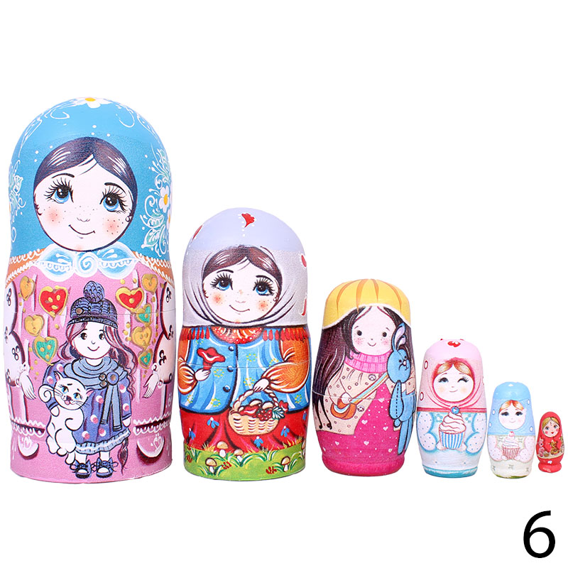 Kvalitné rozkladacie duté maľované ruské matriošky z dreva, ktoré sú vložené jedna do druhej v počte 6 kusov. Výška matriošiek je od 2,5 cm do 16 cm. Klasická drevená ruská matrioška je vhodná ako dekoračný predmet, suvenír, pre zberateľov alebo ako hračka. Nevhodné pre deti do 3 rokov z dôvodu možného prehltnutia najmenšej matriošky. Ideálna drevená dekorácia na poličku.