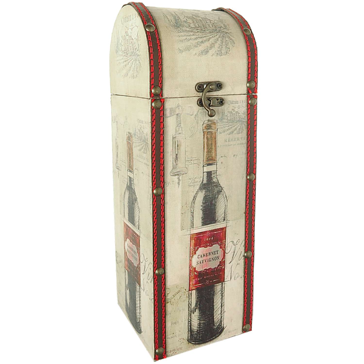 špecifikácia: Kvalitná masívna drevená truhlica na fľaše je nielen pekná dekorácia do bytu, ale aj pekný a originálny obal na víno alebo akýkoľvek druh alkoholu, ktorý chceme darovať, z vonkajšej strany je zdobená s potlačou fľaše vína Cabernet Sauvignon, kovovýmí nitmi, pántami a záklopkou na zatváranie