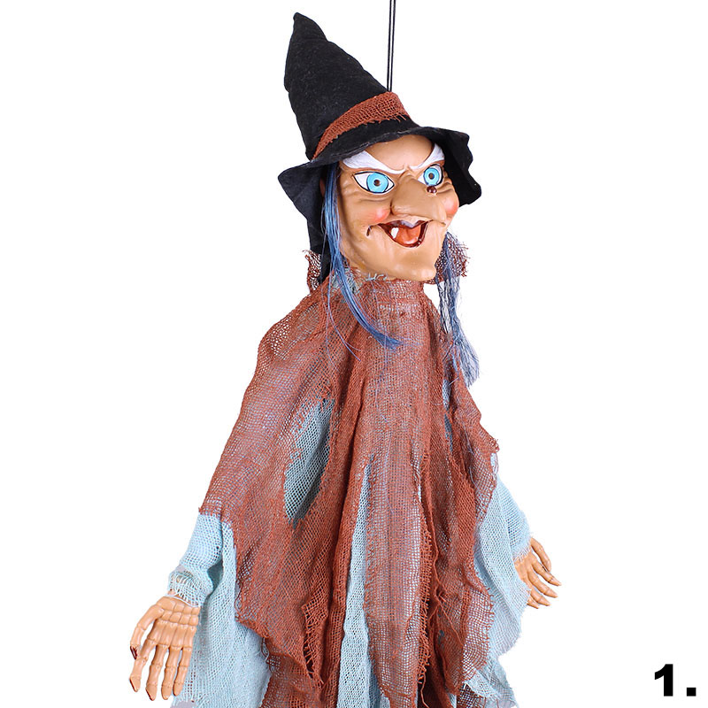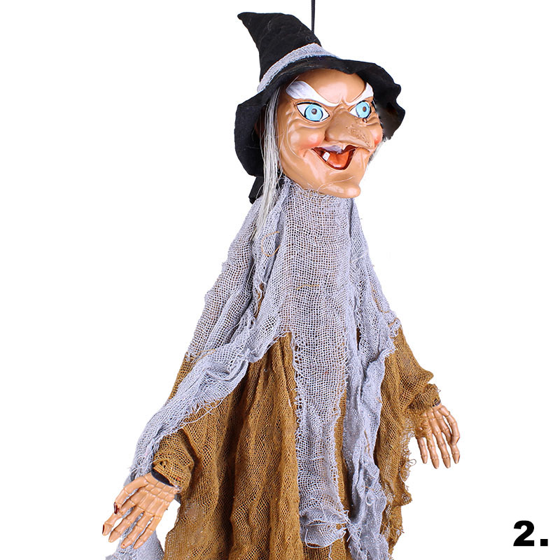 150 cm dlhá striga s klobúkom je oblečená do textilných strigônskych šiat - jedná sa o skvelú halloweensku dekoráciu do bytu alebo ako výzdobu do podniku či na chatu. Pod šatami bosorky je miesto, do ktorého sa vložia dve tužkové batérie 1,5 V AA R6 (nie sú súčasťou balenia). Po vložení bateriek bosorke začnú na 7 sekúnd blikať oči načerveno a začne sa histericky smiať. Po dotknutí bosorky alebo tlesknutí v okolí do 80 cm sa jej rozblikajú oči načerveno a bosorka sa začne zároveň histericky smiať.