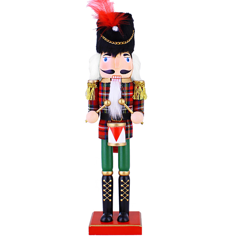 Ak by ste radi videli vo vašej domácnosti nové vianočné dekorácie na tohtoročné Vianoce, potom by medzi ne mal patriť aj tento drevený luskáčik bubeník vo vianočných farbách na zlatom podstavci. S ostatnými luskáčikmi iného vzhľadu vytvorí naozaj neodolateľnú atmosféru, ktorú si budú pochvaľovať všetci členovia rodiny, známi na návšteve či zákazníci v podniku. Tento milo oblečený luskáčik s bubnom a paličkami skvele vynikne na stole či pri stromčeku na Vianoce, ale aj mimo sviatkov. Jeho funkcia na rozbíjanie orechov je v tomto prípade nefunkčná, keďže by poškodila stavbu luskáčika.