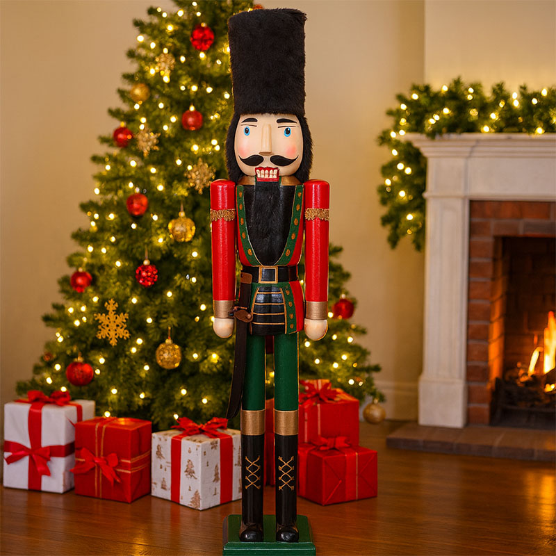 Existuje množstvo dekorácií a doplnkov, ktoré počas vianočných sviatkov skrášlia vašu domácnosť, no tento drevený luskáčik v ľudskej veľkosti vytvorí neodolateľnú atmosféru počas Vianoc, a mnohonásobne spestrí jeho okolie, nech už sa nachádza kdekoľvek. Jedná sa o naozajstný unikát v tomto smere, ktorý len tak niekde nenájdete. Predsa len, videli ste už niekedy luskáčika s výškou dospelého muža? S výškou 180 cm je jediný svojho druhu, čo prekvapí každú návštevu, či známeho pri vstupe do domácnosti. Jeho funkcia rozbíjania orechov je čisto dekoratívna a neslúži na skutočné lúskanie orechov.