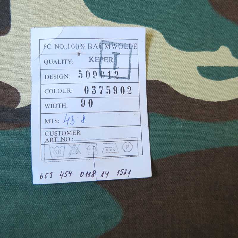 špecifikácia: kvalitná bavlnená maskáčová látka s bledozelenými, tmavozelenými, tmavohnedými a čiernymi mapami, vhodná na zhotovenie vlastných kamuflážnych odevov, blúz, kabátov, kraťasov a nohavíc, vreciek na prezúvky, batohov, tašiek a ruksakov, klobúkov, ale aj ochranných rúšok a pod.,, materiál nie je hydrofóbny, čiže látka nie je nepremokavá, prať pri teplote do 60°C