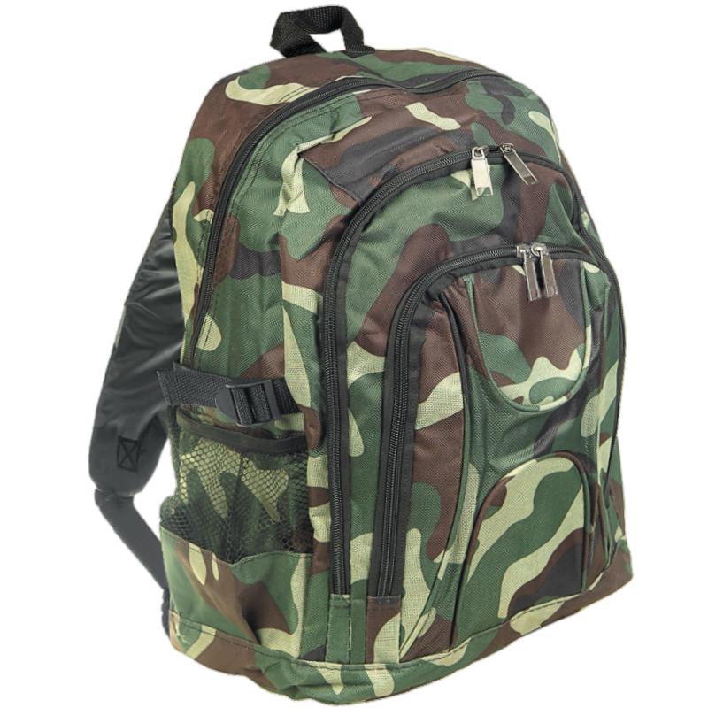 Batoh na turistiku s dizajnom Camo Woodland sa stará o dostatok úložného miesta pre všetky potrebné veci počas potuliek v lese či ľahkého, ale aj náročnejšieho výstupu na vrch. Batoh je vybavený dohromady 5 vreckami, z toho dve slúžia na odloženie fliaš s vodou a tri na uschovanie rôznych potrebných predmetov s menšími aj väčšími rozmermi. Okrem toho sú dve najväčšie vrecká ruksaku vo vnútri oddelené na polovicu priehradkou, vďaka ktorej sa stáva organizovanie turistického vybavenia oveľa jednoduchším. Aby bolo docielený čo najpohodlnejší pocit počas nosenia tašky Camo Woodland, je na povrchu prítomná polstrovaná vrstva, ktorá svojim mäkkým a príjemným povrchom zabezpečuje vynikajúce podmienky na nosenie aj po dobu celého dňa. Rôzne praktické doplnky ako uško na zavesenie ruksaku či pásiky so sťahovacími vlastnosťami len doplňujú už beztak skvelý batoh z pohľadu cena/kvalita. Batoh s týmito rozmermi a objemom cca 20L tak predstavuje ideálny batoh, ktorý pojme všetko potrebné na nenáročnú prechádzku, ale aj celodennú túru lesom či horami.