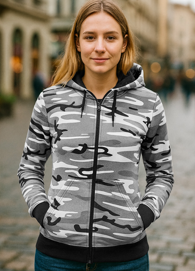 Táto štýlová dámska mikina značky Malfini je vynikajúca maskáčová mikina, ktorá je vhodná na akúkoľvek príležitosť. Na vnútornej strane mikiny sa nachádza vrstva počesaného úpletu, ktorá je hebká na dotyk a príjemne hreje. Gramáž maskáčovej mikiny je 300g/m², vďaka čomu je vhodná na nosenie v chladnom počasí, prechodných mesiacoch či večerných hodinách. Dámska mikina Malfini má na celom povrchu štýlový maskáčový vzor, vďaka čomu sa hodí na rôzne outdoorové aktivity alebo na bežné voľnočasové nosenie.