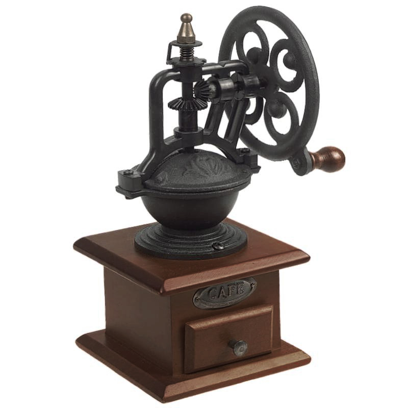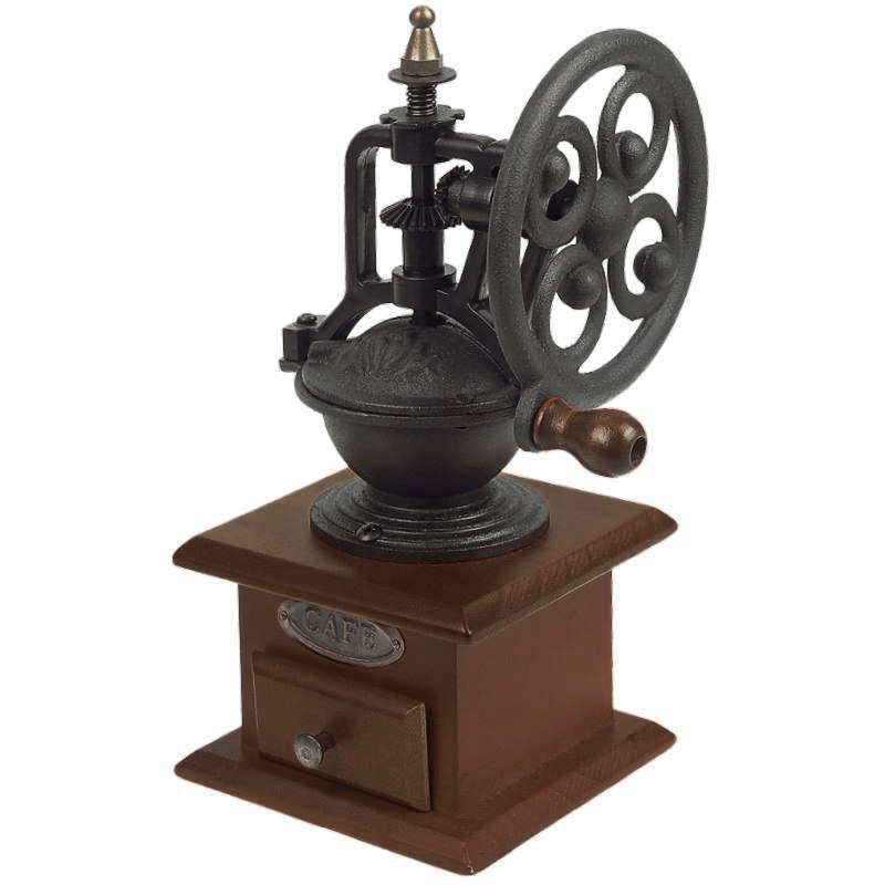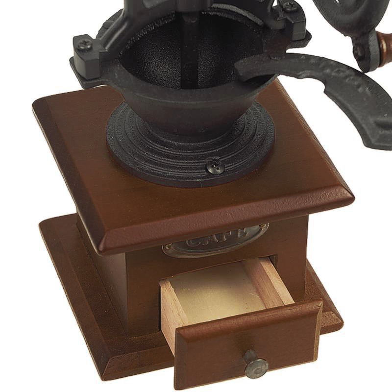 Dekoratívny ručný mlynček na kávu je skvelým pomocníkom v kuchyni, ktorý si v tomto prípade ponechal skvelý retro dizajn dobového nástroja na mletie kávy. Tento ručný mlynček je tvorený z nádhernej drevenej podstavy, ktorá je opatrená štyrmi protisklzovými nožičkami, takže stabilita mlynčeka je zachovaná aj na klzkejších povrchoch. Podstavu dopĺňa samotný mlynček vo vrchnej časti s nápadito skrytým zásobníkom kávy. Po vložení kávy do zásobnika v hornej časti a následnom zomletí sa káva ukladá do drevenej priehradky v spodnej časti mlynčeka, odkiaľ ju jednoducho môžete vysunúť a vybrať.
