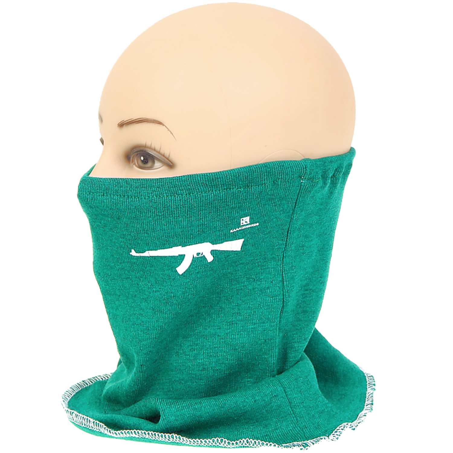 V hornej časti nákrčníku je zobrazený ruský samopal kalashnikov ak47 v bielej farbe, ktorý zaujme milovníkov ruskej tématiky. Nákrčník má vo vrchnej časti zapošitú gumičku, ktorá sa prispôsobí veľkosti hlavy, takže bez problémov sadne na všetky veľkosti hlavy.