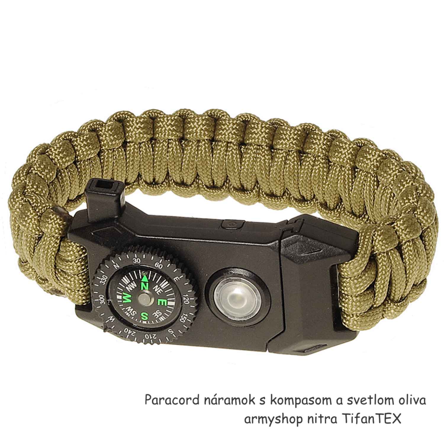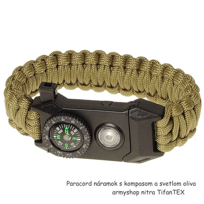 Úvod » Outdoor, Vybavenie » Paracordy a Laná » Paracord náramok s kompasom a svetlom oliva