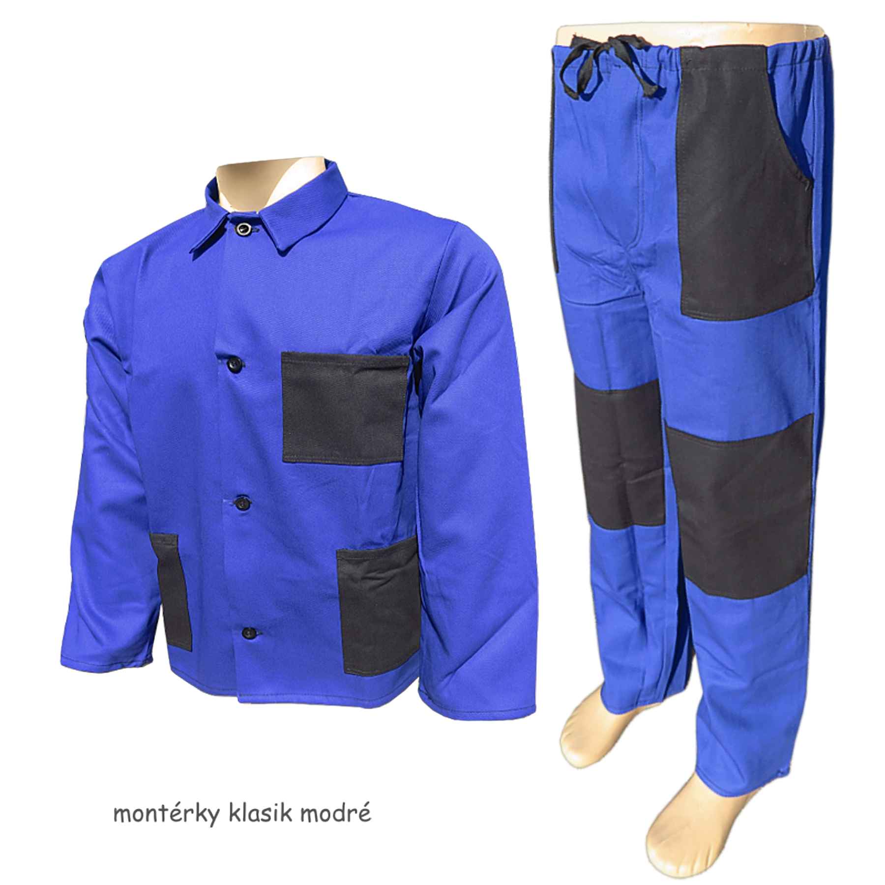 - monterkovú súprava KLASIK modrú možno doplniť pracovnou obuvou, pracovnými tričkami alebo polokošeľami, pracovnými rukavicami a čiapkami, ktoré nájdete na našich stránkach