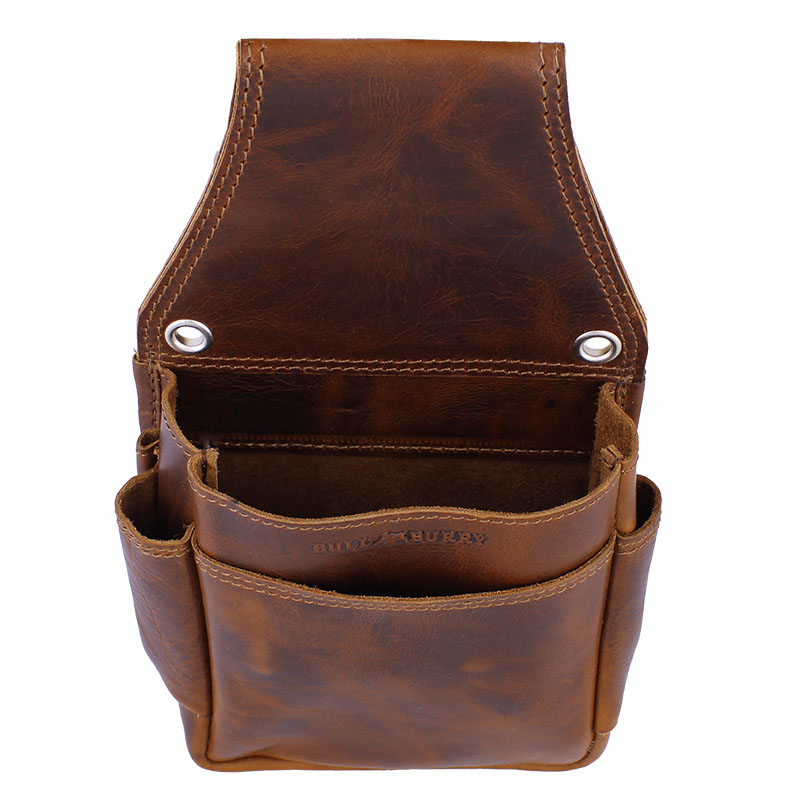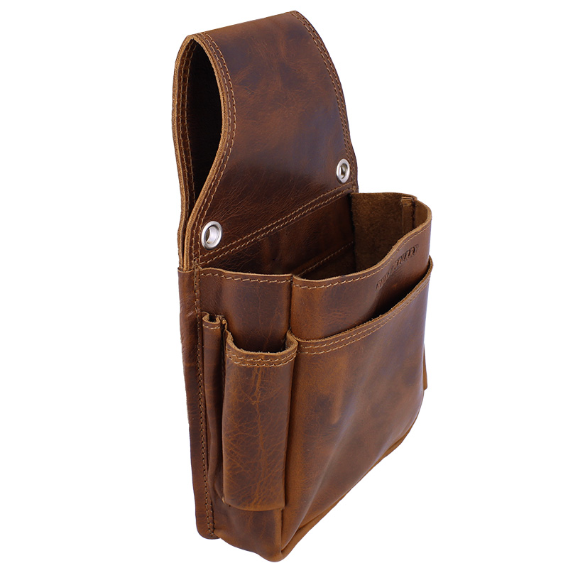 Hnedé puzdro na čašnícku peňaženku vyrobené z kvalitnej kože hrúbky 2mm. Vnútorná hrúbka puzdra je 6 cm a jej vnútorná šírka je 12 cm - čo sú zároveň maximálne rozmery peňaženky, ktorá sa do puzdra zmestí. V prednej časti sa nachádza menšia priehradka pre doklady, papierové peniaze, mince, karty a pod. Na bokoch sa nachádzajú dve komôrky tunelovitého tvaru napríklad pre perá. Puzdro je možné navliecť na opasok.
