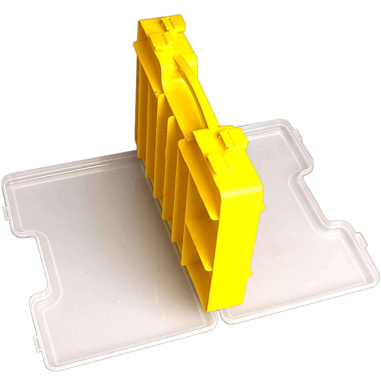 špecifikácia: obojstranný plastový kufrík s prepážkami na ukladanie drobných rybárskych predmetov s priesvitným vekom