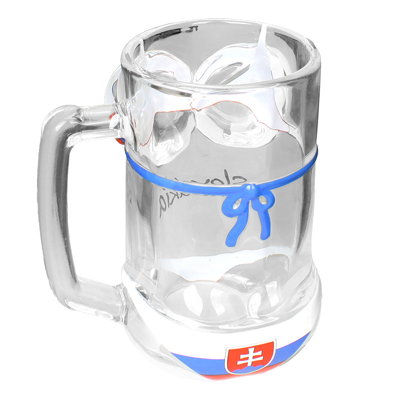 Sklenený pohár s uškom so slovenským motívom ideálny ako pohár na pivo ale aj na iné nápoje. Objem pohára je 300ml a bol vyrobený zo skla. "Prednosti" na pohári vyčnievajú z povrchu pohára, vďaka čomu majú poriadny 3D tvar. Uško pohára je možné chytiť so štyrmi prstami.