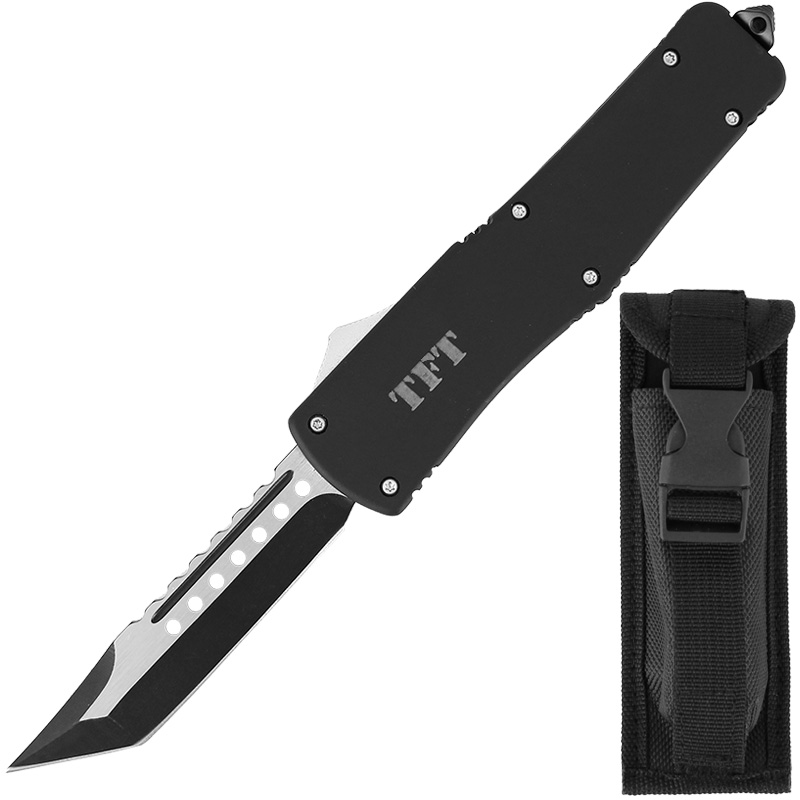 Tento vysokokvalitný vystreľovací nôž OTF značky TFT si rýchlo obľúbite kvôli jeho zaujímavému dizajnu ako aj prvotriednemu vypracovaniu. V skratke ide o čierny vystreľovací nôž s čepeľou z nehrdzavejúcej ocele, ktorá rázne vystreľuje čepeľ z rukoväte vďaka funkcií OTF (out-the-front). Čepeľ noža je navyše doplnená o čierny ochranný náter, ktorý zamädzuje nechcené svetelné odlesky.