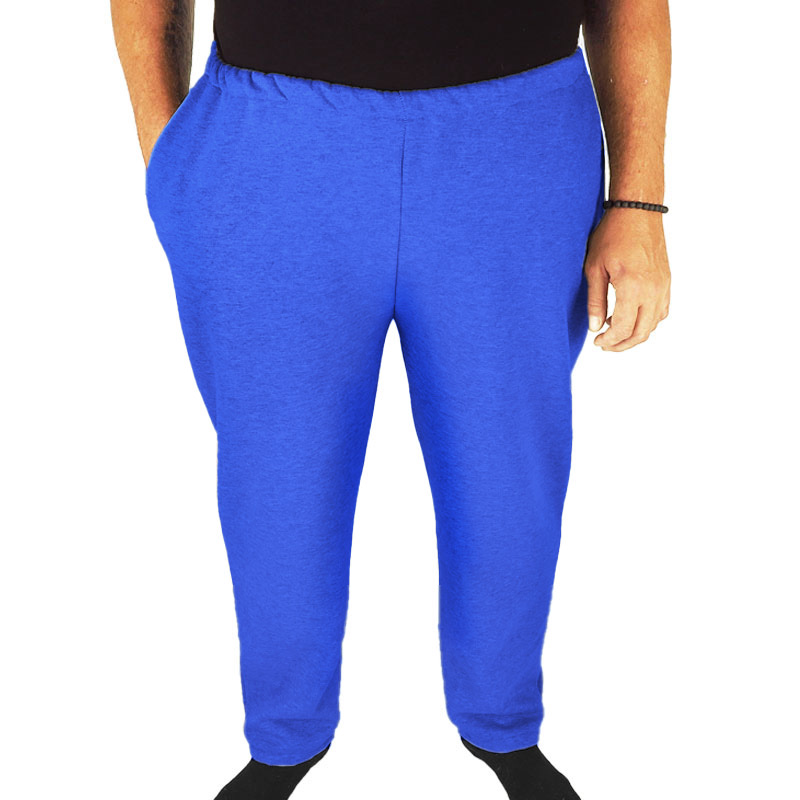 Pánske tepláky nadmerné v modrej farbe sú kvalitné tepláky ideálne pre každého väčšieho chlapa. Tepláky boli vyhotovené z kombinácie bavlny a polyesteru v pomere 60:40 %. Vďaka tomu sú komfortné počas nosenia, príjemné na dotyk ale aj dostatočne pevné. Vnútorná vrstva je tvorená počesaným úpletom. Tepláky sa môžu pýšiť vysokou gramážou až 280g/m². Na bokoch teplákov sa nachádzajú dve hlbšie vrecká. Pás zasa obsahuje elastickú gumičku, ktorá dokáže roztiahnuť obvod podľa našej veľkostnej tabuľky. V prípade, že sa gumička pretrhne je možné ju vytiahnuť cez dierku na vnútornej strane vzadu na teplákoch a pomocou ihly navliecť novú. Nadmerné tepláky TFT modré sú kvalitné tepláky ideálne na bežné nosenie.